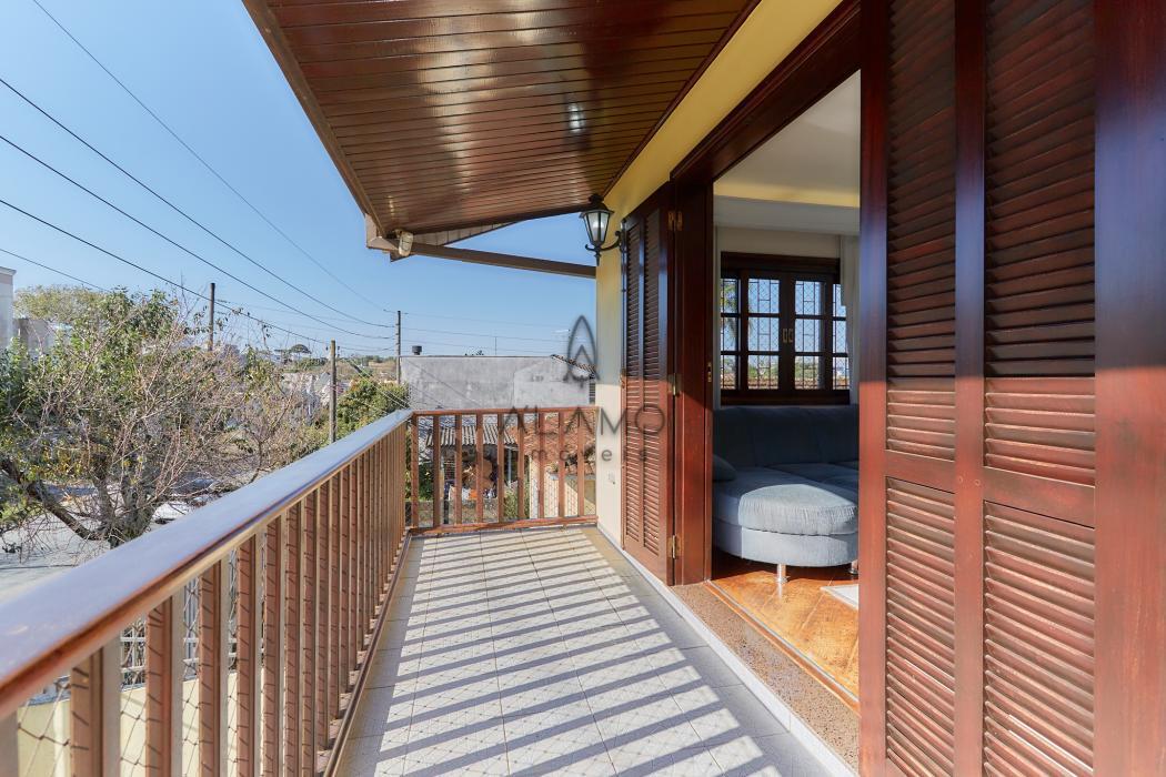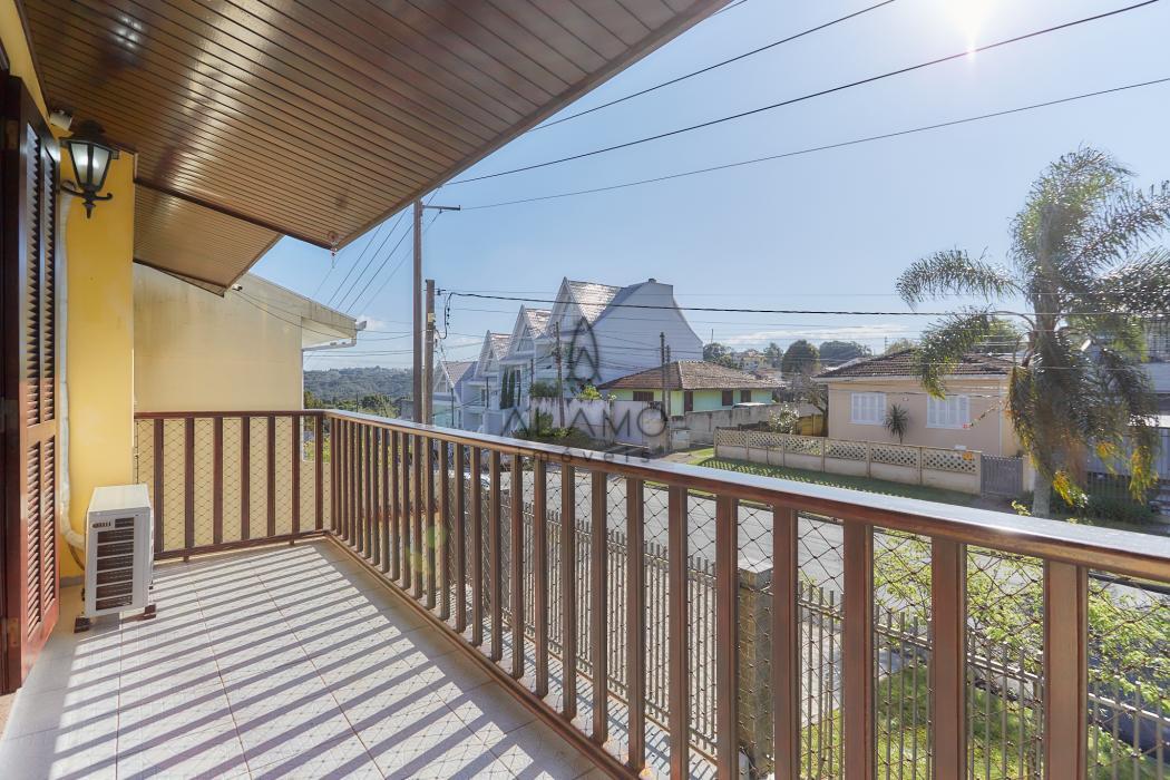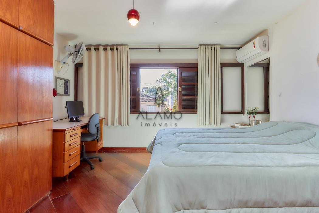 A casa principal é um sobrado com 198 m², face norte, muito ensolarada, com três quartos, sendo uma suíte ampla com ar-condicionado. As salas são integradas e contam com lareira, sacada e lavabo. A cozinha possui despensa e lavanderia, além de garagem coberta para dois carros e sistema de alarme monitorado.