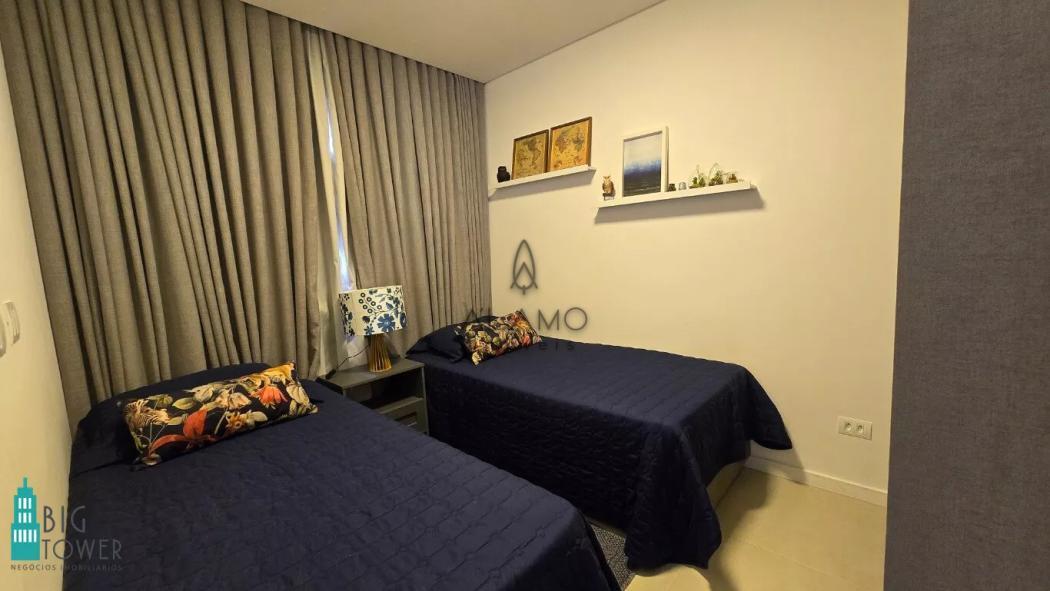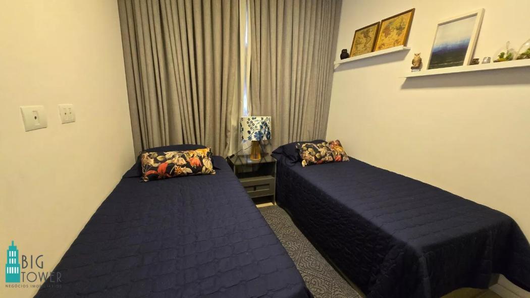 O imóvel está sendo vendido com mobiliário embutido, eletrodomésticos como, geladeira, forno elétrico, microondas, cooktop, máquina de lavar roupas/lava e seca, ar condicionado, camas de solteiro e casal / Box Baú, colchões e cortinas.
