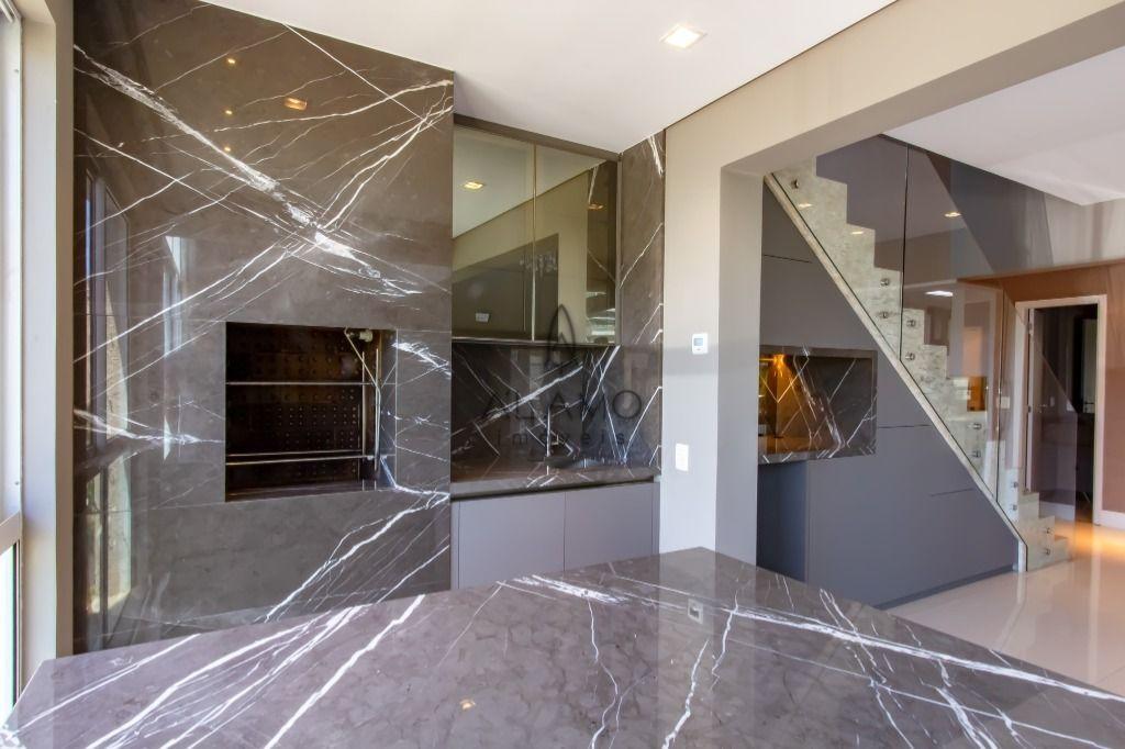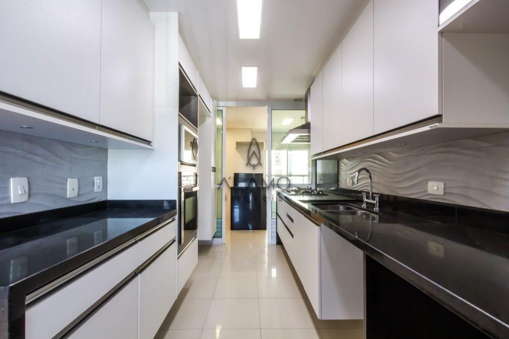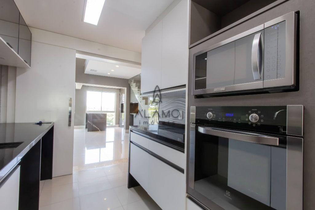 A planta é incrível, e você encontra: sala para 3 ambientes (com pé direito duplo); gourmet com churrasqueira; lavabo; ampla cozinha toda equipada (com marcenaria e eletro); área de serviço; dependência de empregados completa; 4 quartos (sendo 2 suítes) e 3 vagas de garagem!