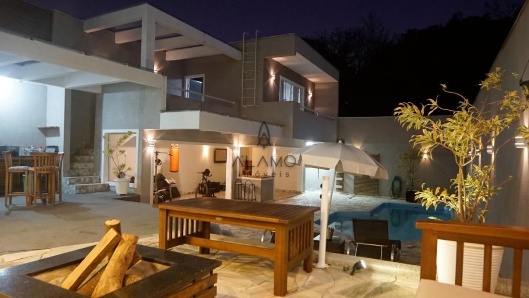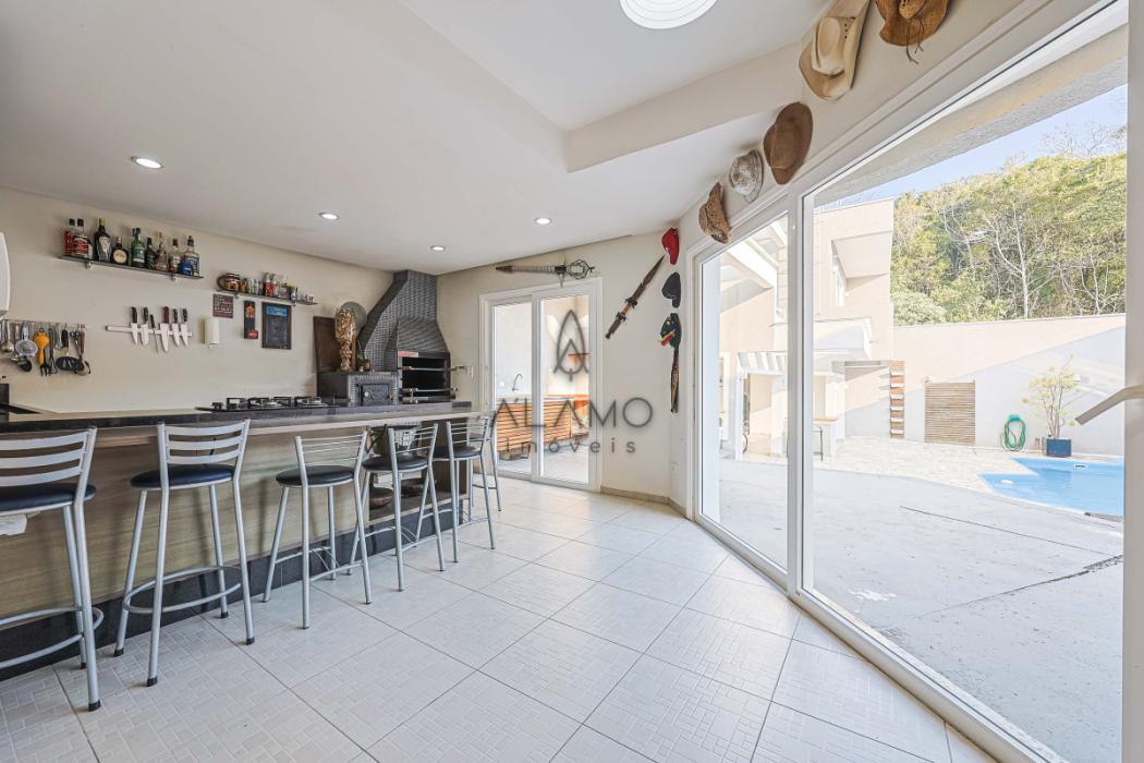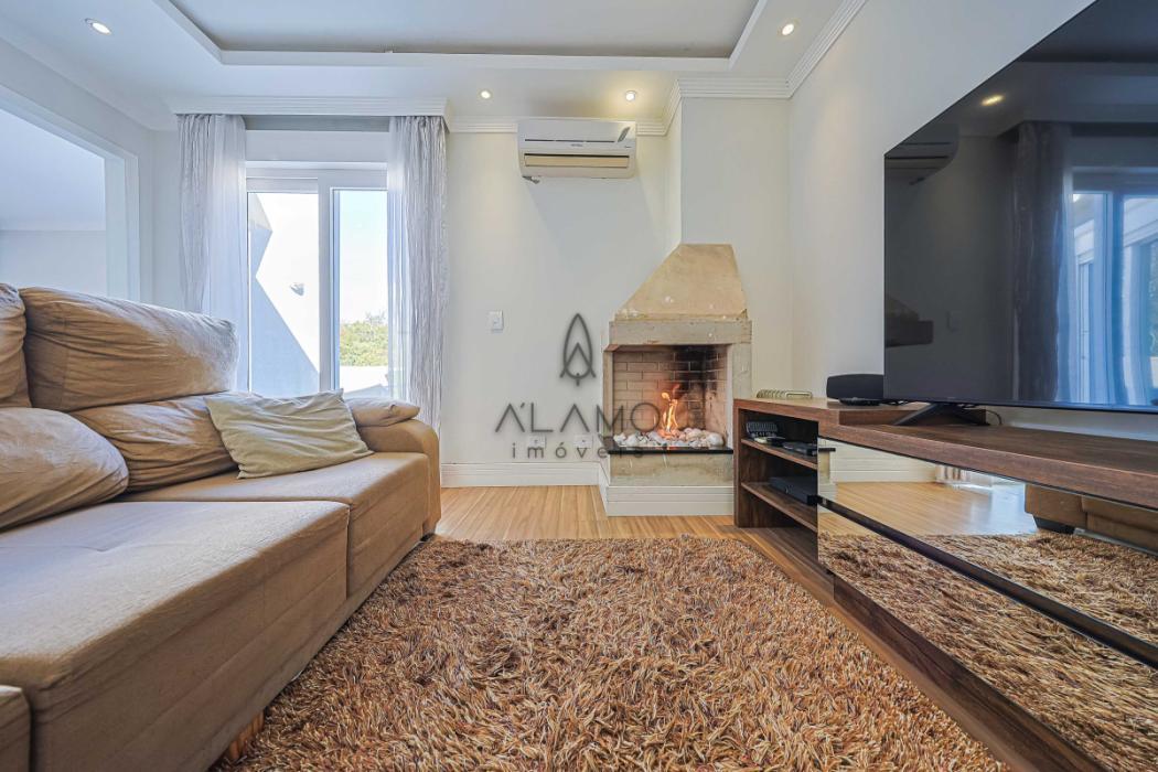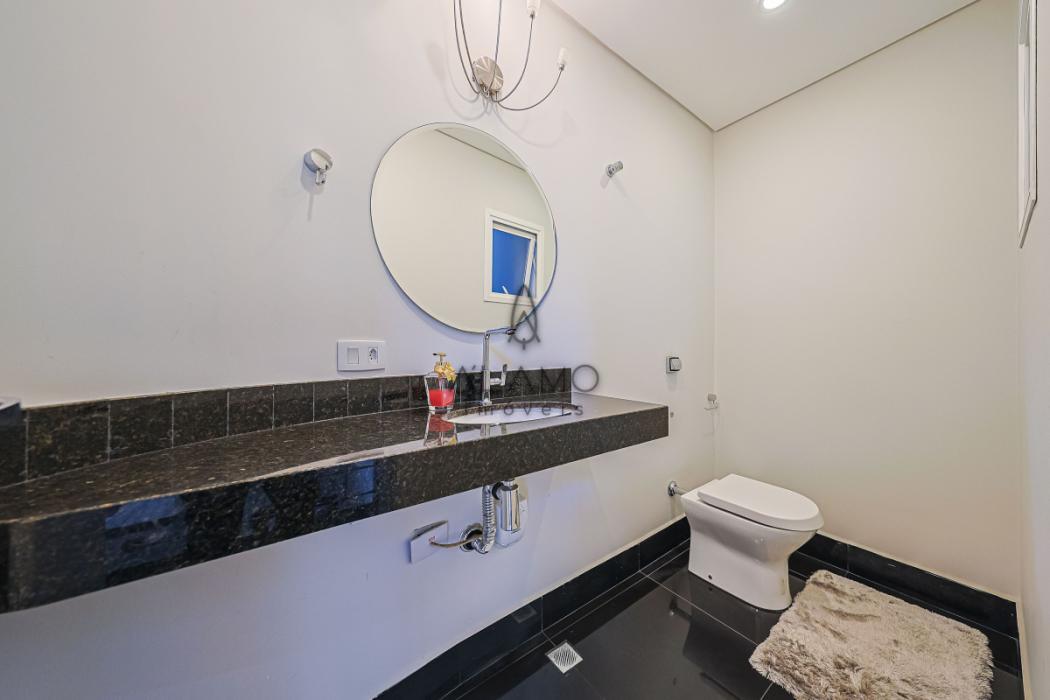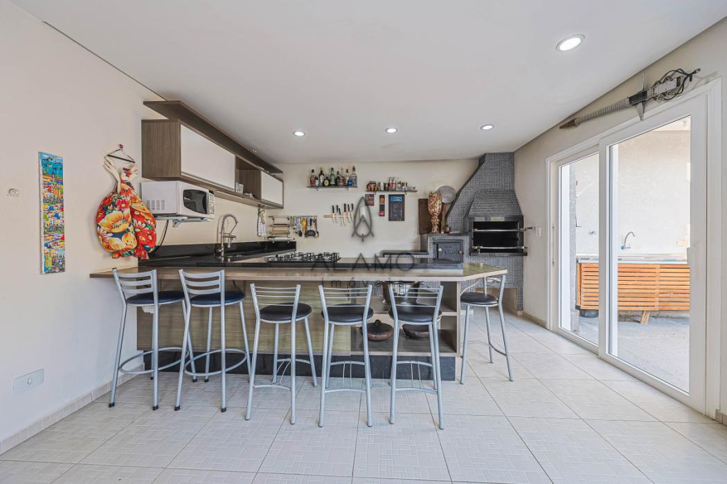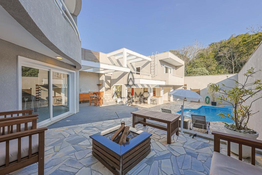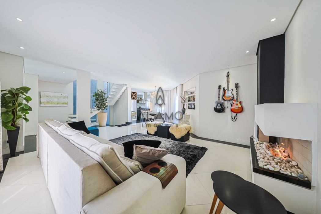 No piso inferior, um verdadeiro espaço de lazer e convivência! Destaque para a área gourmet com churrasqueira, forno à lenha e lavabo. A piscina, com aquecimento elétrico, permitindo a utilização por todo o ano, conta com banheiro exclusivo. Um cantinho especial com lareira externa à lenha torna os fins de tarde ainda mais agradáveis. Há também uma academia, lavanderia independente e um escritório versátil, ideal para home office, sala de jogos ou até mesmo um estúdio de música.