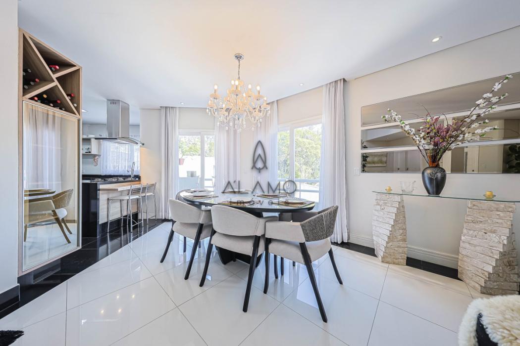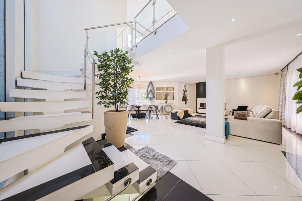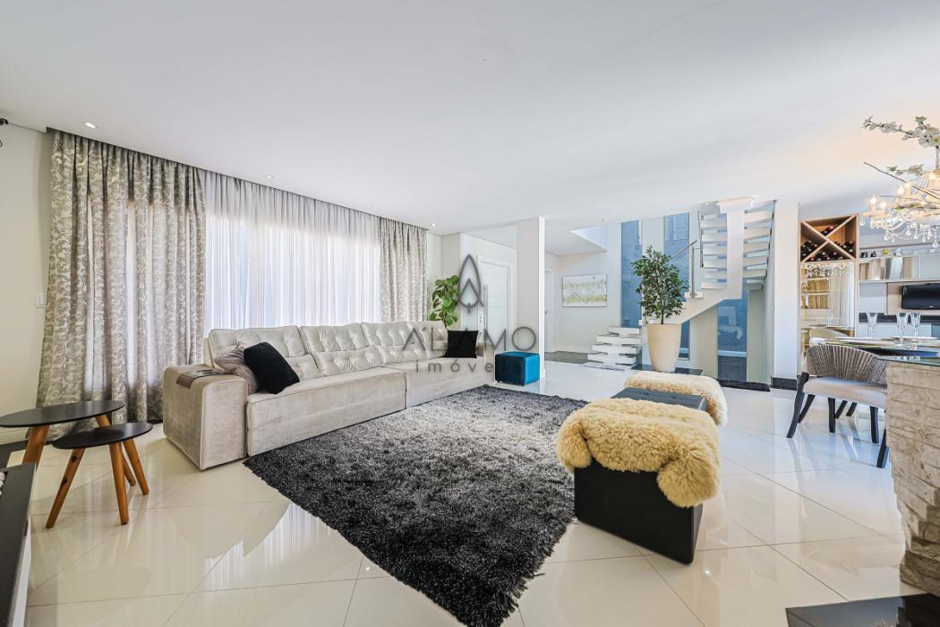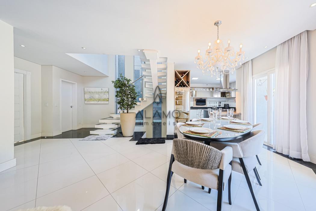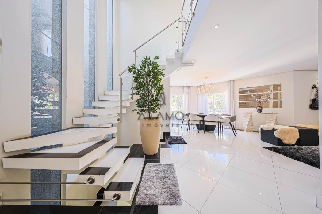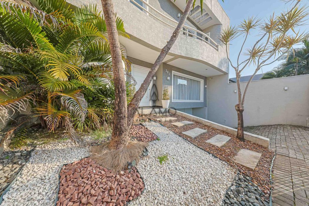 Surpreendente casa de três andares, de frente para a rua, com piscina, medindo 324,76 m² de área útil, sendo 56,61 m² não averbados, compondo a área do escritório e academia. Casa bem iluminada e espaçosa, perfeita para quem busca conforto, praticidade e um toque de sofisticação. Piso porcelanato na área social e laminado na área íntima. Aquecimento de água à gás. Energia trifásica, 2 vagas de garagem cobertas. Portão eletrônico para maior segurança e comodidade. Os muros altos trazem total privacidade. E existe um bosque nos fundos, característica da região do Ecoville, trazendo a sensação de estar no campo, em meio à natureza.