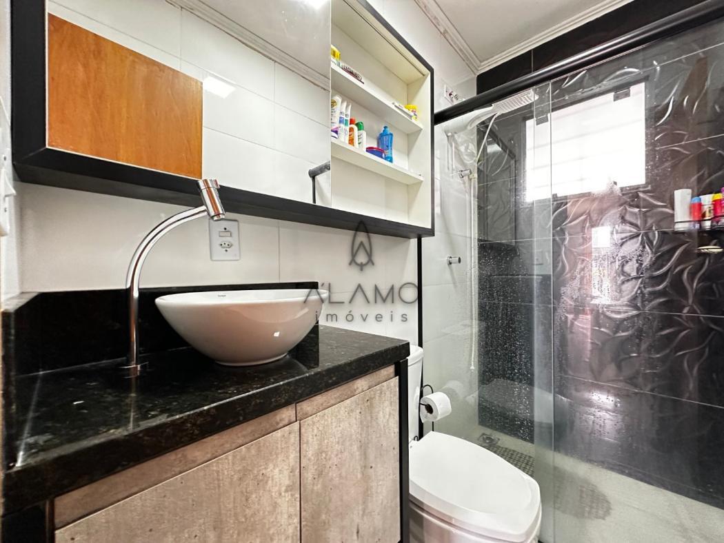 - Banheiro social: Completo com pia, armário, espelho e box de vidro, garantindo modernidade e fácil manutenção.