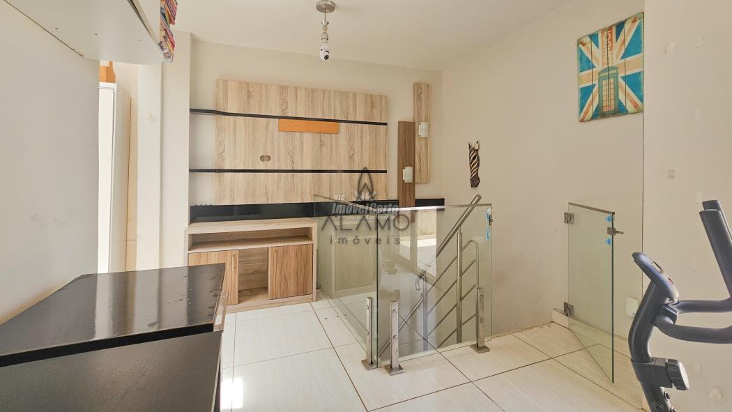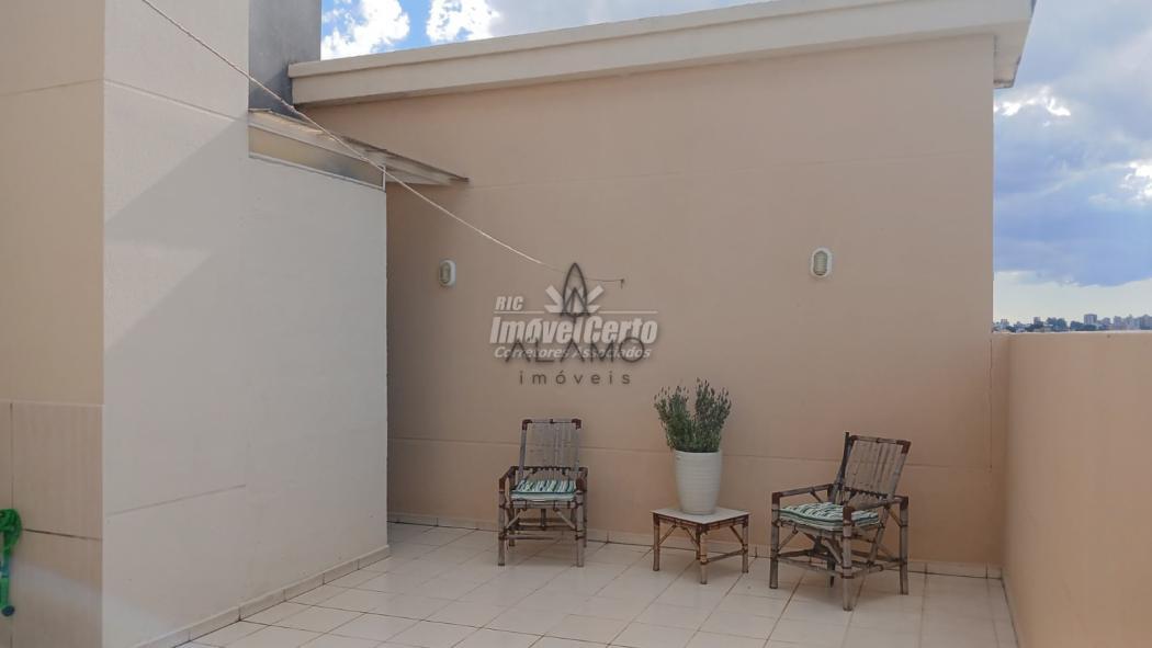 Apartamento com dois pavimentos, sendo o inferior apartamento tipo e o superior um terraço com ático, lavabo e área de serviço coberta.
