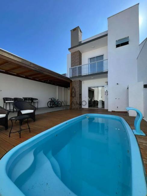 Nos fundos, o espaço gourmet integrado à piscina cria o cenário ideal para receber amigos e familiares, proporcionando momentos de lazer e descontração.