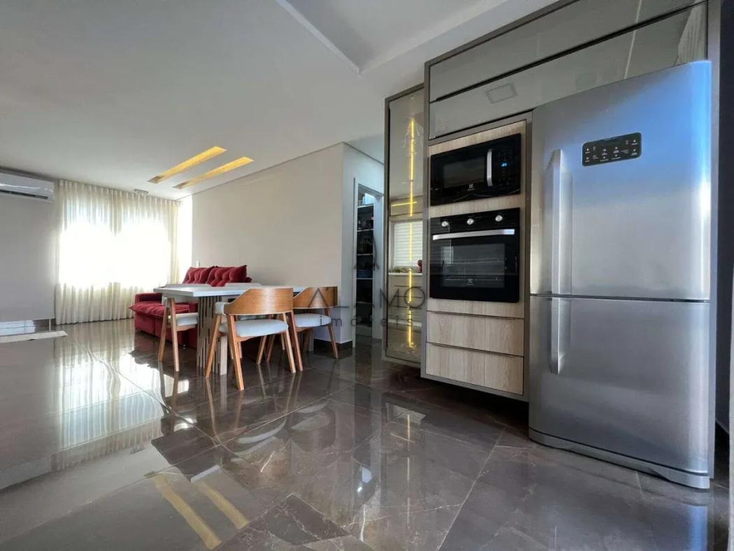 Com três dormitórios, sendo uma suíte e outro transformado em um amplo closet (de fácil reversão), este imóvel foi cuidadosamente decorado e mobiliado, destacando-se pelos acabamentos de alto padrão: pisos em porcelanato, teto rebaixado em gesso e um projeto de iluminação que valoriza cada ambiente.