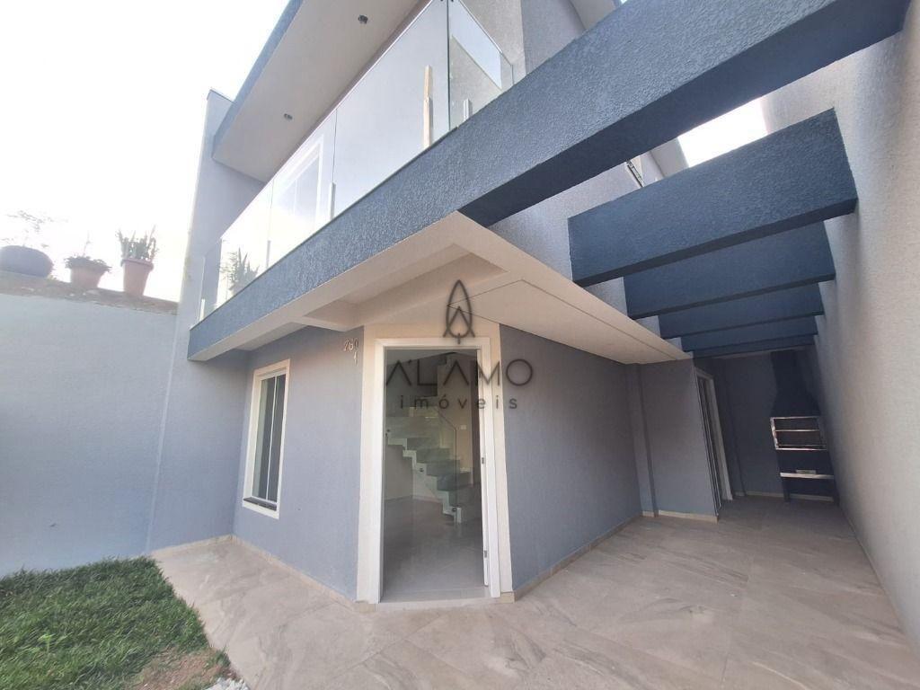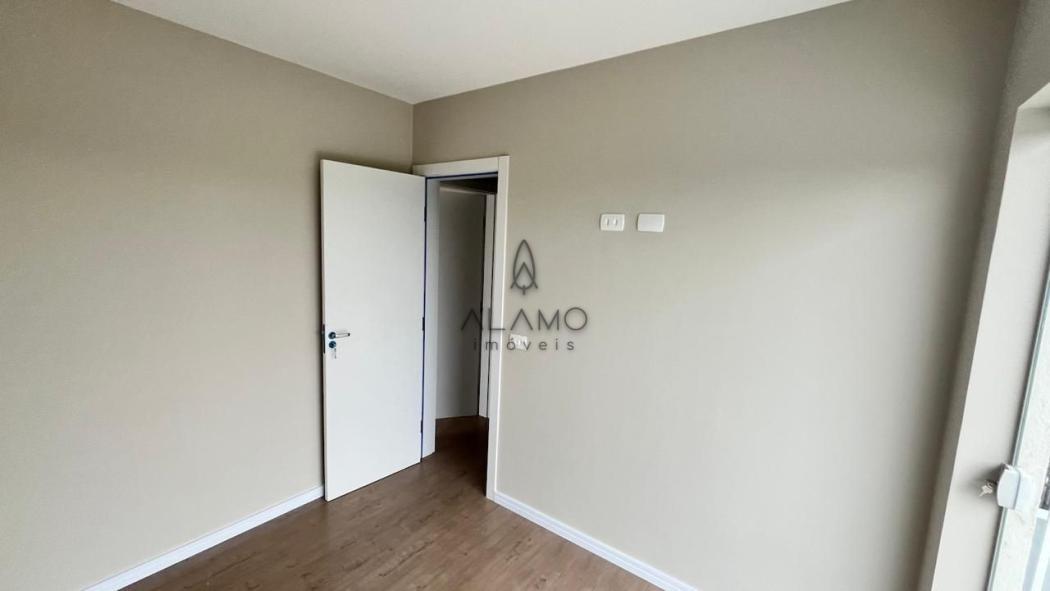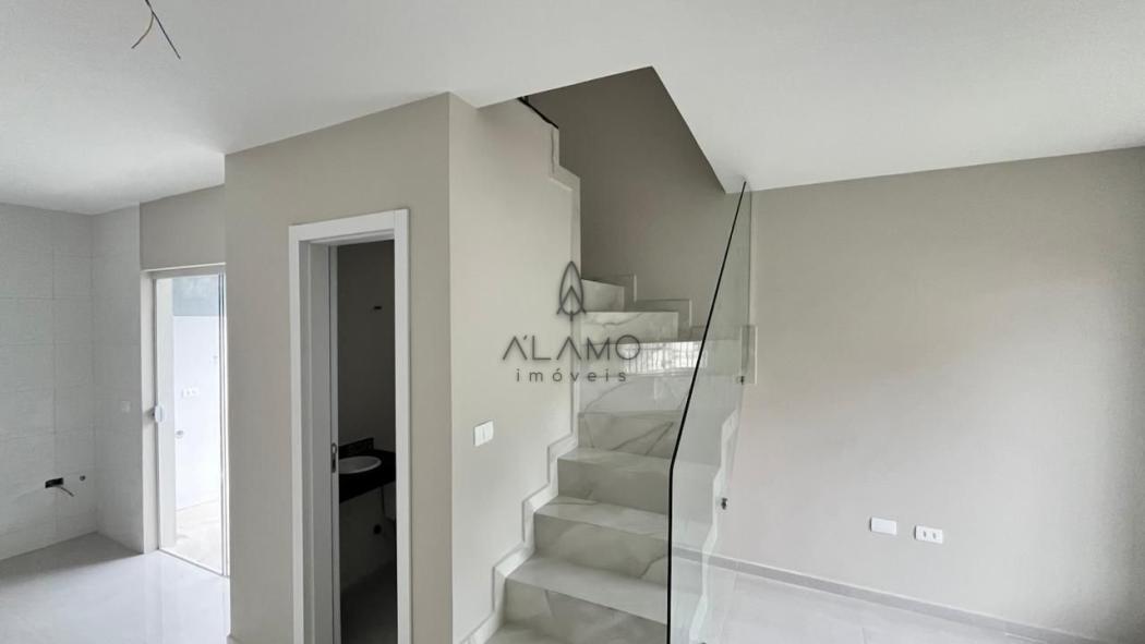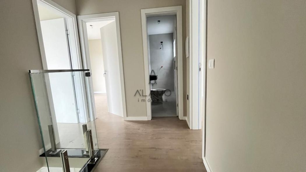 Sacada no quarto de casal que traz mais iluminação e ventilação aos ambientes. Ao adquirir este sobrado, você receberá como cortesia o piso de madeira nos quartos.
