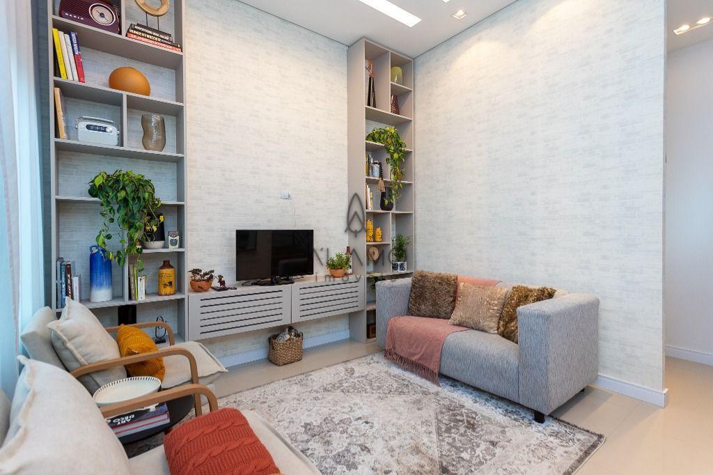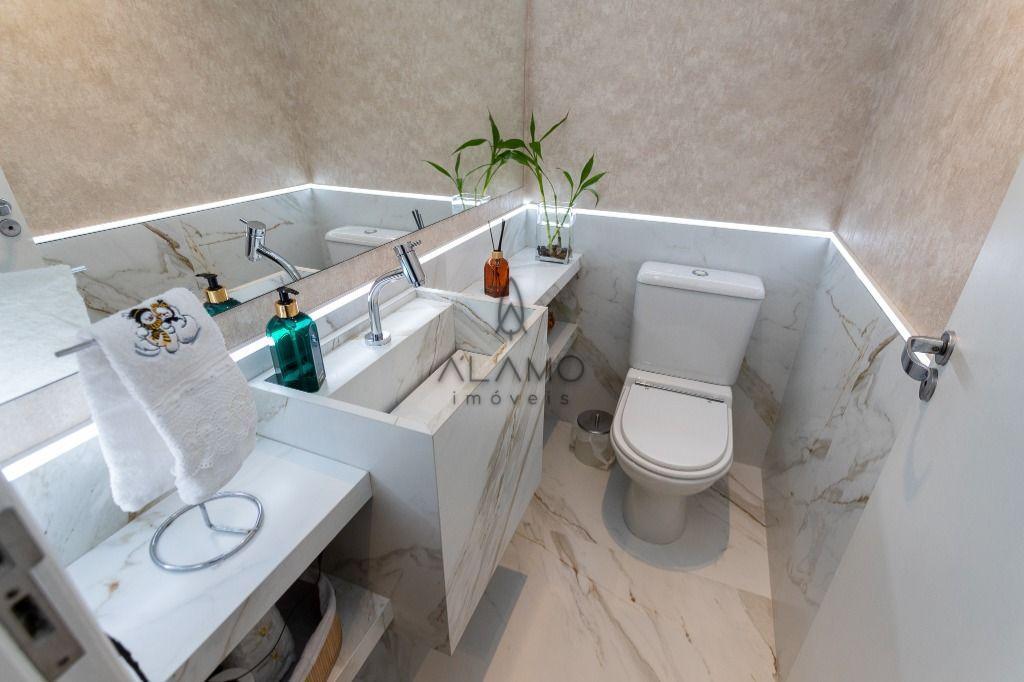A área social possui sala em desnível, que agrega charme e sofisticação ao ambiente entre o estar e o jantar, integrando a cozinha para ótimos momentos em família e amigos. E um lavabo decorado que completa o conforto no pavimento social.
