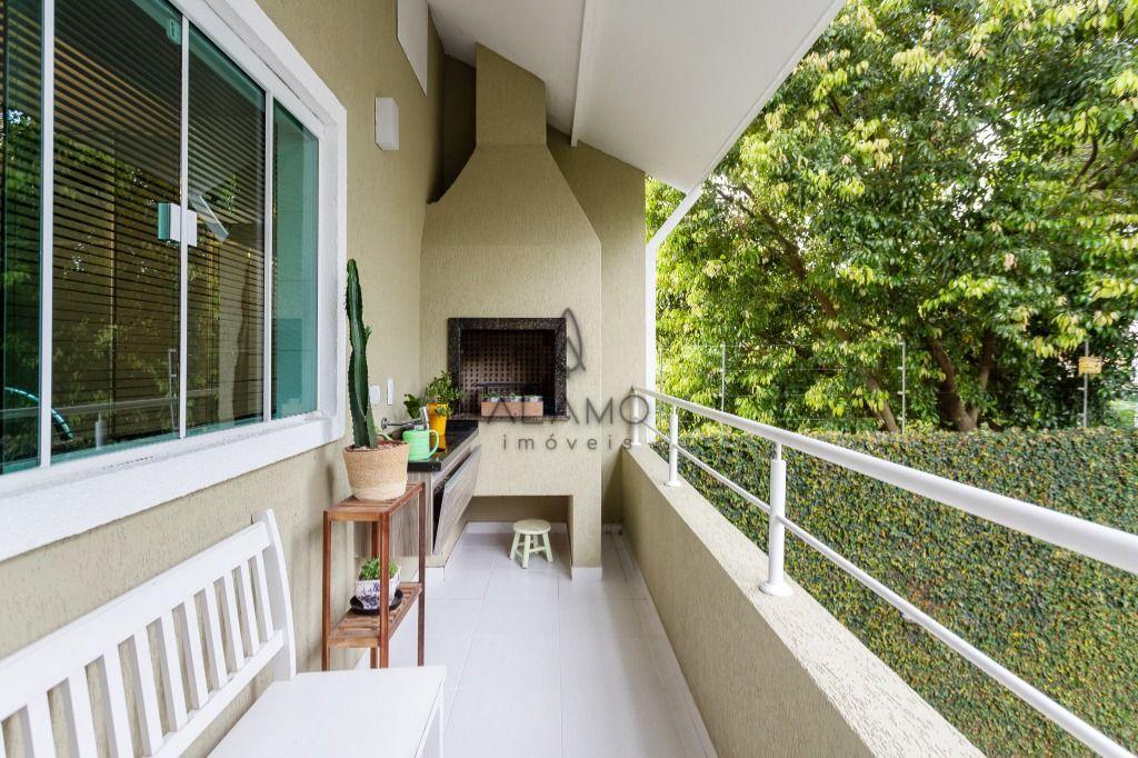 Destaque para a varanda com churrasqueira integrada a sla de jantar, perfeita para receber amigos e familiares, além do jardim frontal que valoriza a fachada e proporciona um ambiente ao sol.